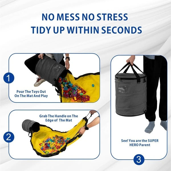 Quick clean-up in seconds: The one-piece toy basket simplifies organization. Its compact size neatly arranges your child's building blocks and small toys. Lay the mat out for hours of playtime and when it's time to tidy up, simply use the convenient drawstring handle to effortlessly gather everything.